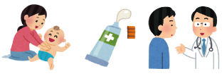 子どもさんは、乳児期から思春期の前までは、皮膚表面の皮脂分泌量が少なく、大人を比べると皮膚の表面は大変乾燥しています。そのため、特に肌が弱い子どもさんでは、保湿剤を可能であれば全身にたっぷり使用しましょう。保湿剤の効果の持続は、数時間とされていますので、夜の入浴後に1回行なうだけでなく朝、できれば昼間にも行なうことをおすすめします。乳児期から学童期の子どもさんは、唾液、食物、汚れ、尿、便などが皮膚に付きやすい生活をしています。シャワー、ぬらしたタオルなどで優しくこれらを取り除き、その後たっぷりと保湿剤を塗り、皮膚の表面を乾燥、こすれなどから守ることで、子どもさんの皮膚トラブルを軽減、または予防しましょう。