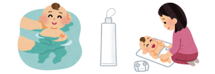 顔面に付着した唾液などの汚れは、ぬるま湯などで湿らせ軽く絞ったタオルなどで、やさしく皮膚表面をタッピング(たたいて)して、やさしく取り除きましょう。体に付着した汗、汚れなどは、シャワーで優しく洗い流すのがおすすめです。